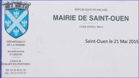Et la commune de Saint-Ouen dans la Somme, qui s'est habituée à un blason attribué par confusion, le conservera. Voila plusieurs décennies qu'elle l'utilise: elle s'y est habituée, et il y a tant d'autres cas de confusion identiques en héraldique municipale!