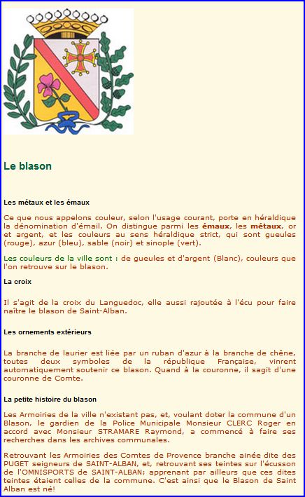 Tranché: au 1er d'argent à la croix cléchée, pommetée de douze pièces, d'or et remplie de gueules, au 2e d'or à la violette au naturel; à la bande de gueules brochant sur la partition.
