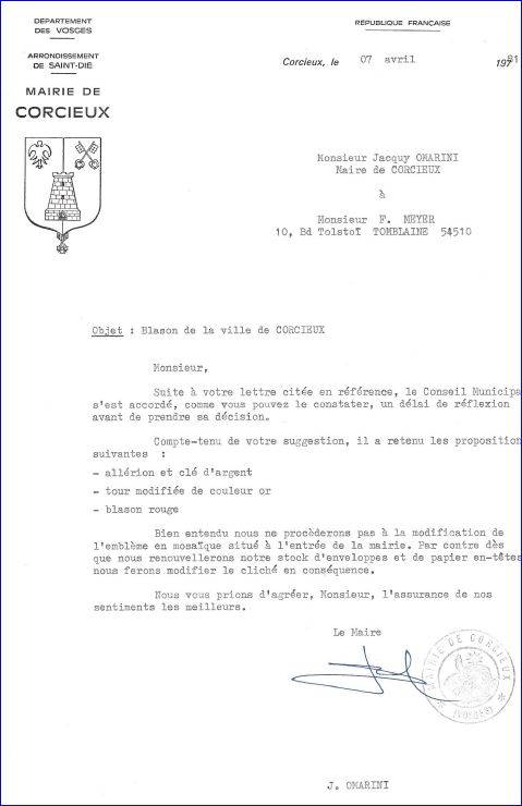 Lettre de comfirmation de la mairie, 1981.