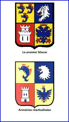 (1964) Écartelé: au 1er d'or au dauphin d'azur crêté, barbé, lorré, peautré et oreillé de gueules, au 2e d'azur à la tête de lion arrachée d'argent et lampassée de gueule, au 3e de gueules à la tour d'argent, ouverte et ajourée d'azur, au 4e d'or à l'aigle d'azur, becquée, membrée et couronnée de gueules.