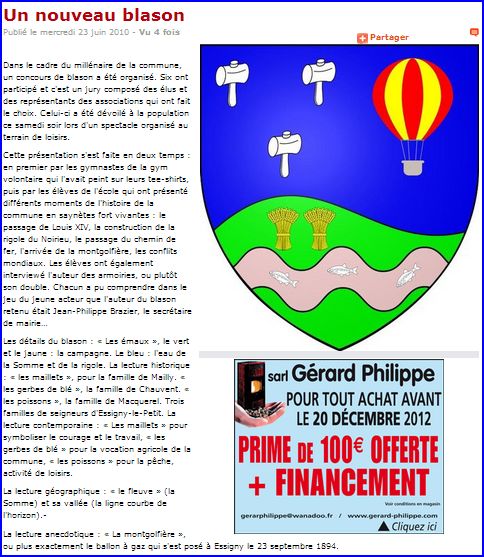 Article de presse de L'Aisne Nouvelle du 23 juin 2010, sur le site du journal.