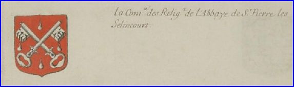 Les armes de l'abbaye de Saint-Pierre-lès-Selincourt.