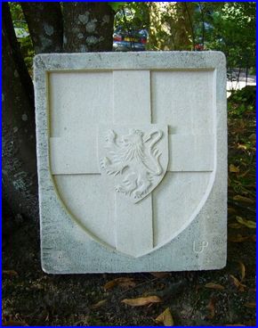 Blason sculpté sur pierre par Philippe Léonard, sur le site du sculpteur, 2012.