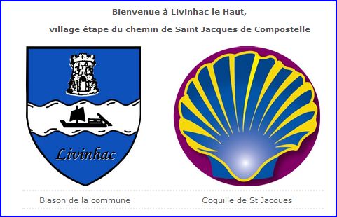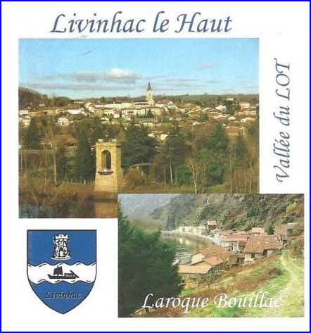 D'azur à la rivière ondée en fasce d'argent chargée d'un gabarrot [bateau de transport fluvial] de sable, surmontée d'une tour d'argent maçonnée de sable et soutenue de l'inscription «Livinhac» du même.