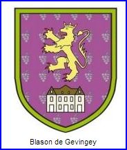 De pourpre semé de grappes de raisin d'argent, au lion couronné d'or armé et lampassé de gueules, soutenu du château du lieu d'argent essoré de tenné; à la filière cousue de sinople.