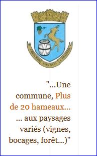 (1992) D'azur à la chèvre saillante d'or, la patte senestre posée sur un tonneau d'argent cerclé de sable, accompagnée à dextre du chef d'une grappe de raisin d'or, tigée et feuillée au naturel.