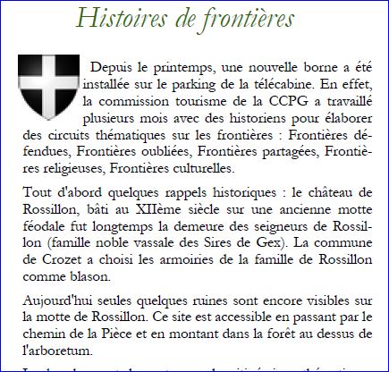 Bulletin municipal Crozet Contact, septembre 2009, page 6.