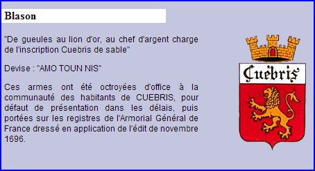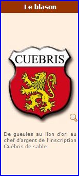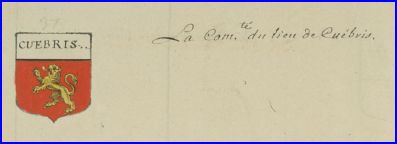 (1696) De gueules au lion d'or; au chef d'argent chargé de l'inscription « CUEBRIS » en lettres capitales de sable.