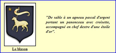 De sable à l'agneau pascal d'argent, portant une bannerette du même chargée d'une croisette de gueules, accompagné d'une étoile d'or en chef à dextre.