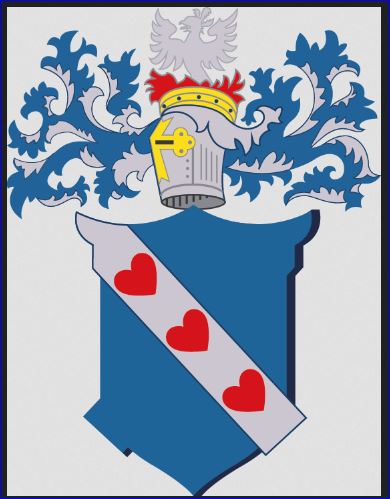 D'azur à la bande d'argent chargée de trois coeurs de gueules posés dans le sens de la bande.