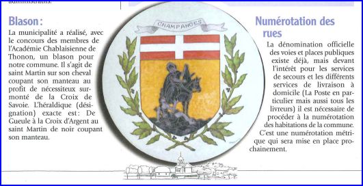 (2009) D'or à saint Martin à cheval, partageant son manteau avec un mendiant, le tout contourné, de sable et terrassé de même; au chef de gueules à la croix d'argent.