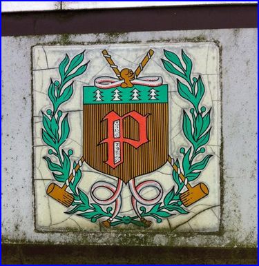De gueules à la lettre capitale P d'argent, au chef d'argent chargé de quatre mouchetures d'hermine de sable.