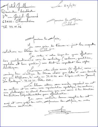 Fac-similé des propositions faites par Michel Guillaumin, 1981 (1/2).