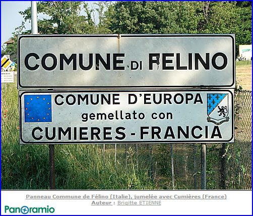 Panneau d'entrée de la ville jumelle de Felino (I) sur le site en référence.