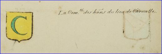 (2005) Écartelé: au 1er d'or à la lettre capitale "C" de sinople, au 2e de gueules à l'étoile d'or surmontée d'un croissant versé d'argent, au 3e conte-écartelé aux I et IV d'azur semé de fleurs de lis d'or, aux II et III d'argent au chef de gueules, au lion d'azur armé, lampassé et couronné d'or brochant, à la bande de gueules chargée de trois lionceaux d'argent brochant sur le tout, au 4e d'azur au château d'argent, le pont-levis abaissé, la tour du milieu couverte et pavillonnée du même, maçonné et ouvert de sable.
