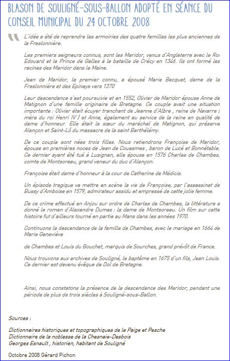 Blason sur le site de la Communauté de Communes des Portes du Maine, 2012.