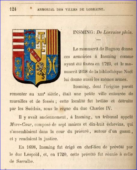 Extrait de l'Armorial des Villes de Lorraine et Barrois, Constant Lapaix, 1877.