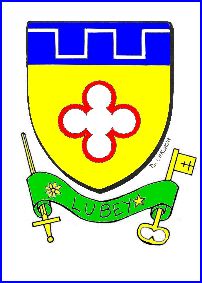 (2003) D'or à l'oculus quadrilobé de gueules, rempli d'argent; au chef d'azur chargé d'un filet crénelé d'argent.