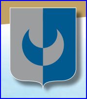 (1989) Parti d'argent et d'azur, au croissant brochant de l'un en l'autre.