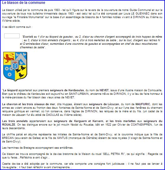 Blason sur le site de la commune, 2012.