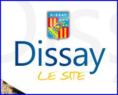 Écartelé: aux 1er et 4e de gueules à deux pals d'or, au 2e d'azur au croissant d'or accompagné de six croisettes recroisetées au pied fiché du même rangées en fasce trois en chef et trois en pointe, au 3e d'azur à la bande d'argent côtoyée de deux jumelles potencées imbriquées intérieurement d'or; sur le tout, d'or au dauphin d'azur barbé, crêté, lorré, oreillé et peautré de gueules; le tout surmonté d'un comble d'azur chargé de l'inscription « DISSAY » d'argent.