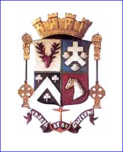 (1975) Écartelé: au 1er d'argent au rencontre de cerf de gueules, au 2e d'azur à l'étai alésé et croiseté d'argent accompagné de trois coquilles du même, au 3e de sable au chevron d'argent accompagné de trois trèfles du même, au 4e de gueules à la tête de cheval coupée d'argent.