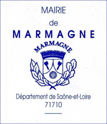 De gueules à la fontaine héraldique fascée ondée d'argent et d'azur, cerclée d'argent; chapé ployé du même chargé de deux haches affrontées de sable, celle de dextre posée en bande, celle de senestre en barre.