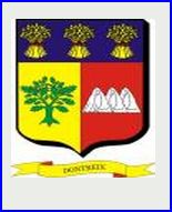 Parti: au 1er d'or au chêne de sinople, au 2e de gueules à trois monts d'argent rangés en fasce; le tout sommé d'un chef d'azur chargé de trois gerbes de blé d'or liées de gueules.