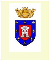 (1956) De gueules à la tour d'argent, maçonnée de sable, ouverte et ajourée du champ; à la bordure d'azur, chargée de huit fleurs de lis d'or.