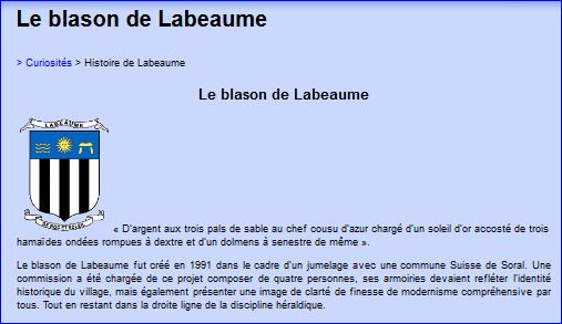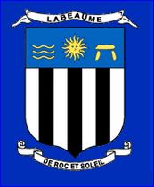 (1991) D'argent à trois pals de sable; au chef d'azur chargé d'un soleil d'or adextré d'une tierce ondée et alésée et senestré d'un dolmen, du même.
