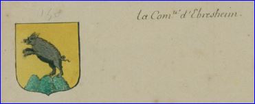 D'or au sanglier rampant de sable, défendu, langué et onglé d'argent sur un mont de trois coupeaux de sinople.