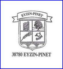 Écartelé, les quatre quartiers bordés d'un filet d'or: au 1er d'azur à la tour du lieu d'argent maçonnée de sable, ajourée du champ et mouvant de la pointe, au 2e d'azur à deux monts cousus de sinople mouvant des flancs, l'un derrière l'autre, à l'arbre arraché d'argent brochant sur le tout, au 3e de sinople à l'épi de blé d'or posé en barre, au 4e d'azur au dauphin d'argent; le tout posé sur une champagne d'argent chargée d'une rivière d'azur mouvant de la pointe et d'un pont droit de trois arches d'argent, maçonné de sable, mouvant du trait de la champagne, des flancs et de la pointe, et brochant sur la rivière.
