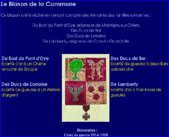 Écartelé: au 1er d'or au chêne de sinople, au 2e de gueules à deux bars adossés d'or, au 3e de gueules à l'alérion d'argent, au 4e d'or à trois roses de gueules.