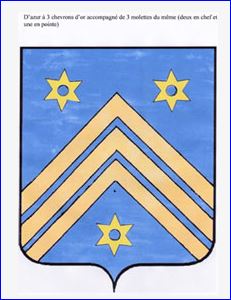 (2012) D'azur à trois chevrons d'or accompagnés de trois molettes du même.