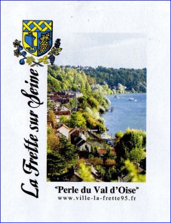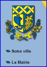 Parti: au 1er d'or à la nef d'azur, au 2e d'azur au pampre fruité et feuillé d'or; le tout sommé d'un chef d'azur fretté d'or.
