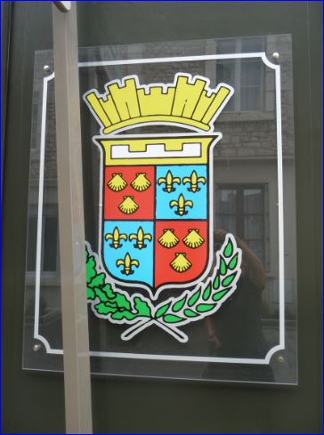Écartelé: aux 1er et 4e de gueules à trois coquilles d'or, aux 2e et 3e d'azur à trois fleurs de lis d'or.