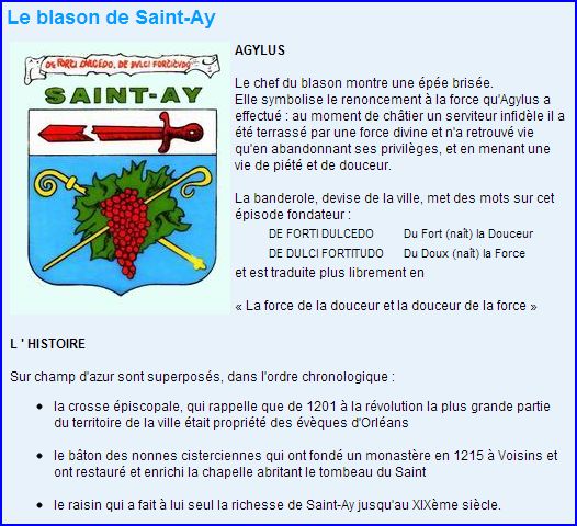 D'azur à la crosse d'or en bande, au lit de feuilles de vigne de sinople, brochant, au bâton pastoral de nonne cistercienne contourné d'or brochant en barre, à la grappe de raisin de gueules brochant sur le tout; au chef d'argent chargé d'une épée de gueules, posée en fasce, la pointe brisée à dextre.