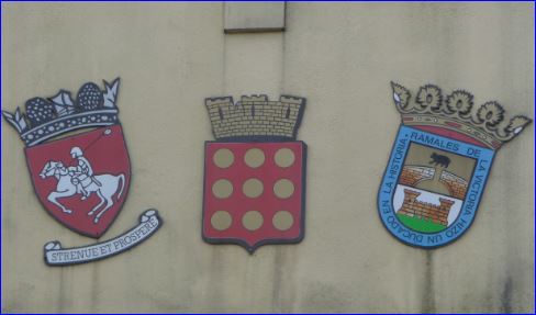 Blason de la commune et de ses villes jumelles.