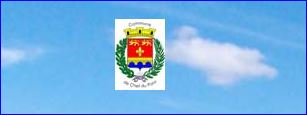 (2012) De gueules à la fleur de lis d'or surmontée de deux léopards du même, armés et lampassés d'azur et soutenue d'un pont droit de trois arches d'or maçonné de sable sur une rivière d'azur.