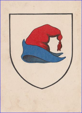 (XVIe s.) D'argent au bonnet albanais contourné de gueules, bordé, doublé et retroussé d'azur.