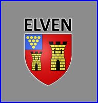 (1987) De gueules à deux tours d'or, ouvertes, ajourée, crénelées et maçonnées de sable, celle de dextre plus petite; au franc-canton d'azur chargé de dix besants d'or ordonnés 4, 3, 2 et 1.