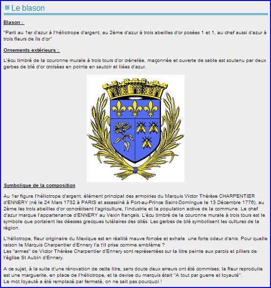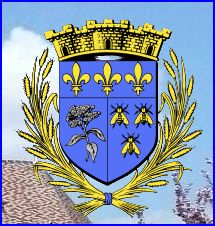 Parti: au 1er d'azur à l'héliotrope d'argent, au 2e d'azur à trois abeilles d'or; le tout sommé d'un chef d'azur chargé de trois fleurs de lis d'or.