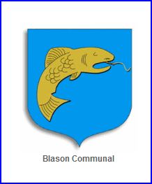 (1996) D'azur à la truite contournée d'or courbée en pal engoulant un hameçon et son fil du même mouvant du flanc senestre.