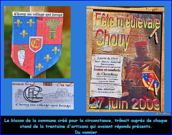 (2009) Écartelé: au 1er d'azur à trois fleurs de lis d'or, au 2e de gueules à la gerbe de blé d'or, au 3e de gueules à la rave d'argent feuillée de sinople, au 4e d'azur à trois fleurs de lis d'or rangées en barre; sur le tout de gueules à la lettre gothique C d'or et à la bordure d'argent.