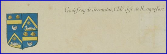(2013) Écartelé: aux 1er et 4e d'azur à la fasce d'or accompagnée, en chef, de deux coquilles du même et, en pointe, d'un croissant d'argent, aux 2e et 3e d'azur au chevronnel d'or accompagné en pointe d'une salamandre d'argent, couchée dans son brasier d'or, et surmontée d'un soleil du même.