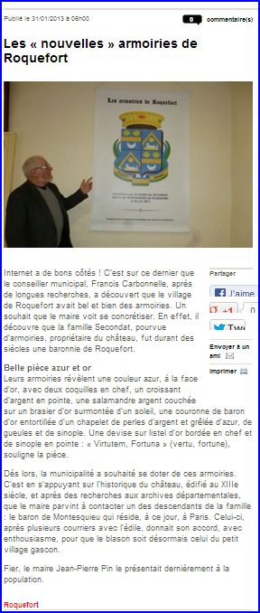 Article de presse Sud Ouest du 31 janvier 2013, sur le site du journal.