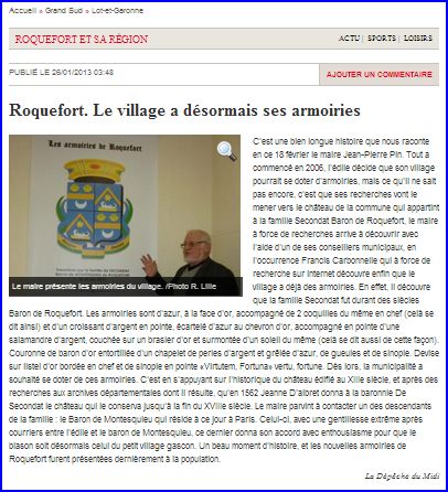 Article de presse La Dépèche du Midi du 26 janvier 2013, sur le site du journal.