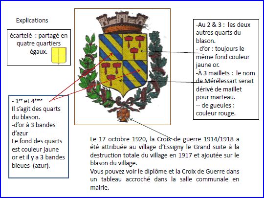 Écartelé: aux 1er et 4e d'or à trois bandes d'azur, aux 2e et 3e d'or à trois maillets de gueules.