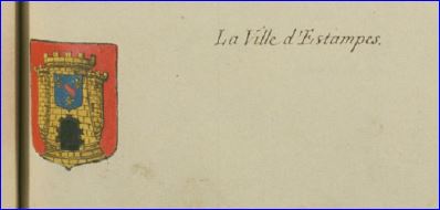 (1819) De gueules à la tour crénelée d'or flanquée de deux échauguettes du même, la tour ouverte et ajourée de sable, chargée d'un écusson d'azur à trois fleurs de lis d'or et brisé en coeur d'un bâton péri en bande de gueules chargé de trois lionceaux d'argent.