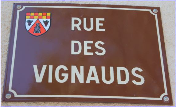 De gueules à la tour d'argent maçonnée et ouverte de sable; chapé d'argent chargé de deux grappes de raisin de gueules; le tout sommé d'un chef échiqueté de gueules et d'or de deux tires.